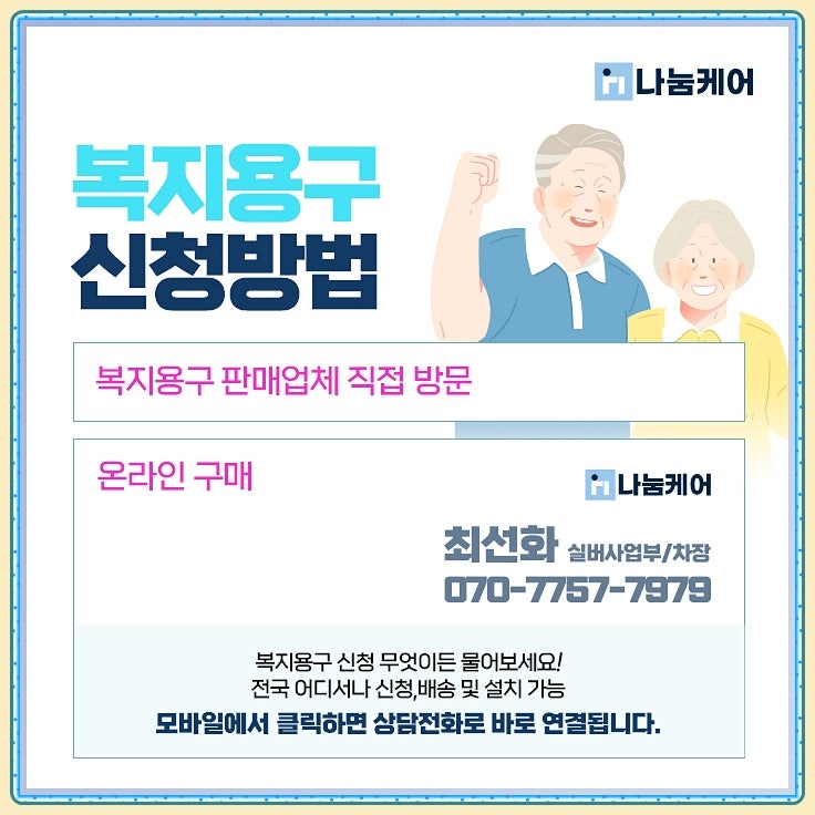 입소 전에는 이동변기나 욕창예방 매트리스, 자세변환 용구처럼 개인 위생과 건강 유지에 필요한 용품을 미리 준비하는 것을 추천합니다. 또한 대여 중이던 복지용구는 요양원 입소 전 반드시 반납 절차를 완료해야 하며, 입소 후에는 재가급여 이용이 불가능하다는 점을 유의해야 합니다. # 요양원 입소 조건도 확인하세요 요양원 입소는 일반적으로 65세 이상 고령자 또는 65세 미만의 노인성 질환을 가진 분이 대상이며, 장기요양 1~2등급 판정을 받은 경우 입소 자격이 주어집니다. 단, 요양원에 입소하게 되면 복지용구 급여나 대여 지원을 받을 수 없기 때문에, 입소 전 수급자의 건강 상태를 고려해 필요한 물품을 미리 구입해 두는 것이 현명합니다. 요양등급 판정이 완료되기 전이라면 복지용구를 급여로 미리 구매해 둘 수 있고, 입소가 확정된 후에는 대여 품목을 반납하고 입소 절차를 진행해야 합니다. 복지용구는 온라인 주문 시 배송에 3~5일 정도 소요될 수 있으므로, 입소 일정을 고려해 여유 있게 준비하는 것이 좋습니다. # 요양원 입소 전 많이 이용되는 복지용구 요양원 입소 전 어르신들이 가장 많이 구매하는 복지용구는 이동변기, 욕창예방 매트리스, 자세변환 용구, 성인용 보행기, 요실금 팬티, 미끄럼방지 양말 등입니다. 이동변기는 화장실 이동이 어려운 분들에게 필수적인 제품으로, 원목형, 플라스틱형, 바퀴형 등 다양한 형태가 있습니다. 욕창예방 매트리스는 장시간 누워 있는 어르신의 피부에 가해지는 압력을 분산시켜 욕창을 예방해 주며, 자세변환 용구는 무릎, 등, 허리 등에 쿠션을 받쳐 체압을 고르게 분산시키는 기능이 있습니다. 또한 거동이 불편한 어르신에게 안정적인 이동을 돕는 성인용 보행기나, 요실금 문제로 불편함을 겪는 분들을 위한 요실금 팬티, 낙상사고를 예방하는 미끄럼방지 양말 등도 복지용구 급여를 통해 지원받을 수 있습니다. # 복지용구 급여 이용, 나눔케어에서 편리하게 복지용구 급여는 신청 절차나 품목 선택이 까다롭게 느껴질 수 있습니다. 나눔케어는 장기요양보험 복지용구 전문기관으로, 수급자의 등급과 상태에 맞춰 복지용구 급여 품목 안내부터 구매·대여 절차, 반납까지 한 번에 상담받을 수 있습니다. 또한 제품의 사용법과 관리 방법, 교체 시기까지 세심하게 안내해드리기 때문에 처음 이용하시는 분들도 안심하고 이용할 수 있습니다. 요양원 입소 전 필요한 복지용구를 미리 준비하고, 대여 중인 물품은 반납 절차를 완료해야 합니다. 복지용구 급여 이용과 관련된 자세한 문의는 나눔케어 고객상담센터로 연락하시면 도움을 받으실 수 있습니다. |