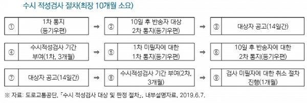 국회입법조사처에 따른 '고령운전자 등의 운전면허 관리 체계 분석 및 개선 방안' 보고서는 다음과 같이 보고하고 있습니다. 2019년 1월부터 75세 이상 적성검사 주기를 5년에서 3년으로 단축했으며, 인지능력검사 결과 치매가 우려되는 경우 수시 적성검사 대상자로 편입하는 등의 대책을 마련했습니다. 현행 법령상 치매환자는 면허를 취득할 수 없으나, 치료를 받거나 약을 먹어 운전이 가능하다는 전문의 소견소와 운전적성판정위원회의 검증 등을 통해 수시 적성검사를 합격하면 운전이 가능합니다. 현행 법령상 치매환자는 면허를 취득할 수 없으나, 치료를 받거나 약을 먹어 운전이 가능하다는 전문의 소견소와 운전적성판정위원회의 검증 등을 통해 수시 적성검사를 합격하면 운전이 가능합니다. 그러나 이 과정에서 운전자가 자신의 지병을 알리지 않아도 검사에서 합격이 가능하며, 교통사고를 내지 않는 한 식별이 불가능합니다. 입법조사처는 의사 또는 가족 등 제3자가 특정인의 수시 적성검사를 요청할 수 있는 제도를 논의할 필요가 있다고 제안했습니다. 현재는 수시 적성검사 운영상에도 문제가 있는 것으로 드러났다. 수시 적성검사의 결과는 합격 또는 불합격으로 판정돼야 하지만, 최대 2년의 재검 의무를 부여하는 판정 유예(면허유지) 제도를 유지하고 있습니다. 2019년도에 면허 갱신 대상인 75세 이상 운전자 중 수시 적성검사를 받은 100명 중 20명은 판정 유예를 받았습니다. 판정 유예를 받으면 아무런 제한 없이 운전자와 동일한 자격으로 운전을 할 수 있는 것이 현 제도의 허점입니다. 운전 능력이 없을 것으로 의심돼 수시 적성검사를 통보 받아도 규정 상 10개월까지는 유예가 가능합니다. 즉, 수시 적성검사 유예 기간을 최대한 이용하고, 판정 유예까지 받으면 최대 2년 10개월 간은 운전이 가능할 수도 있습니다.