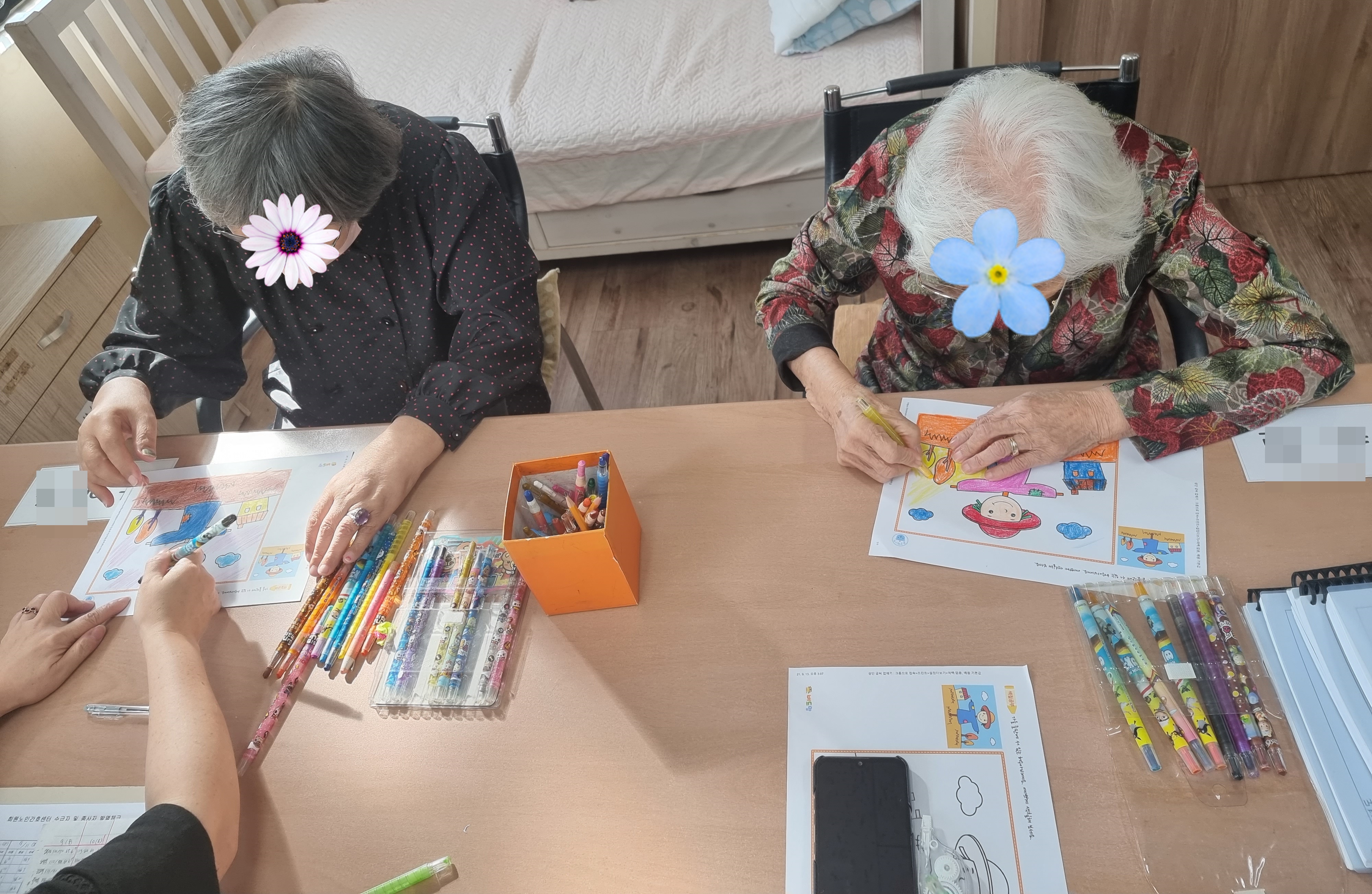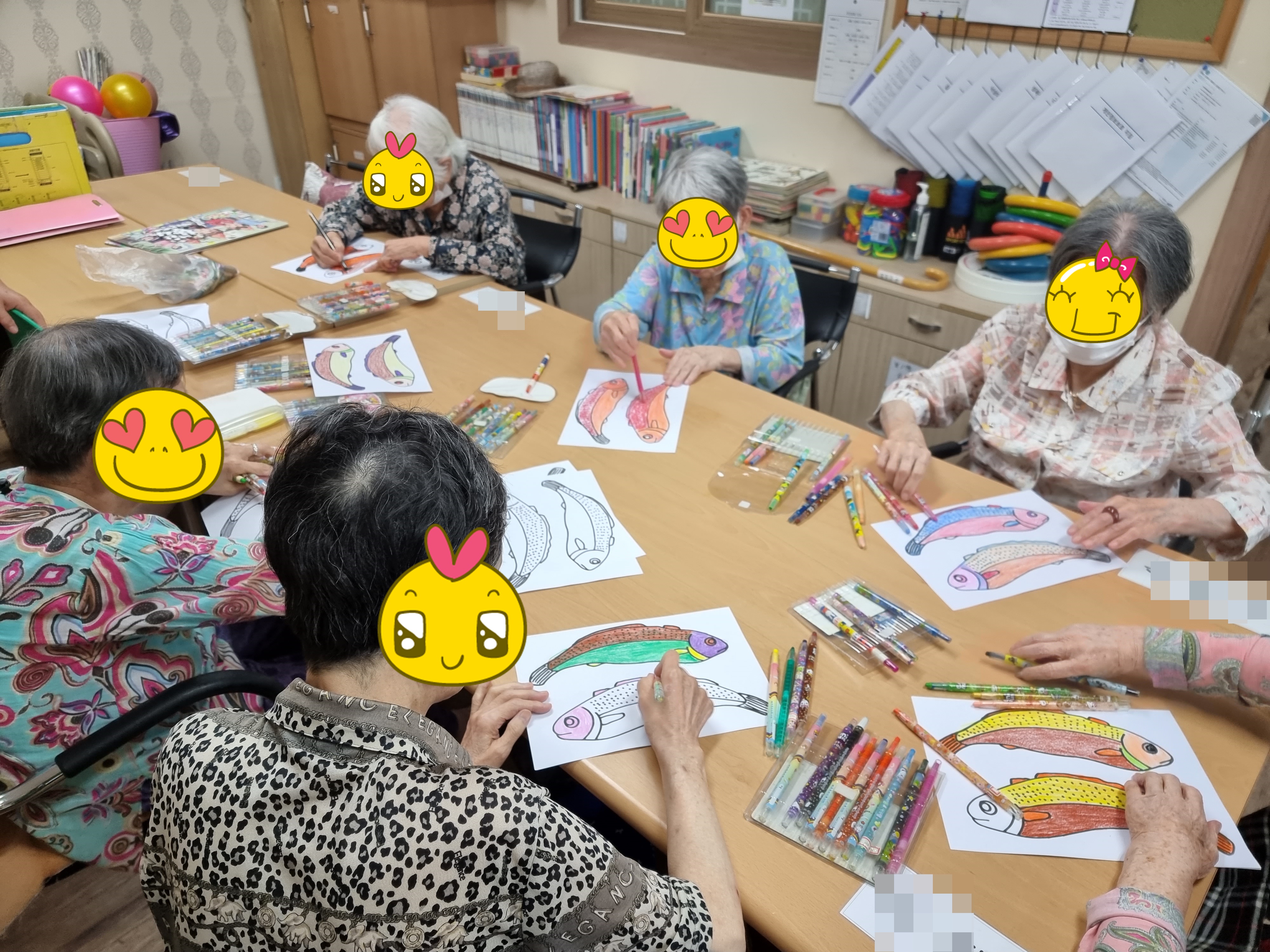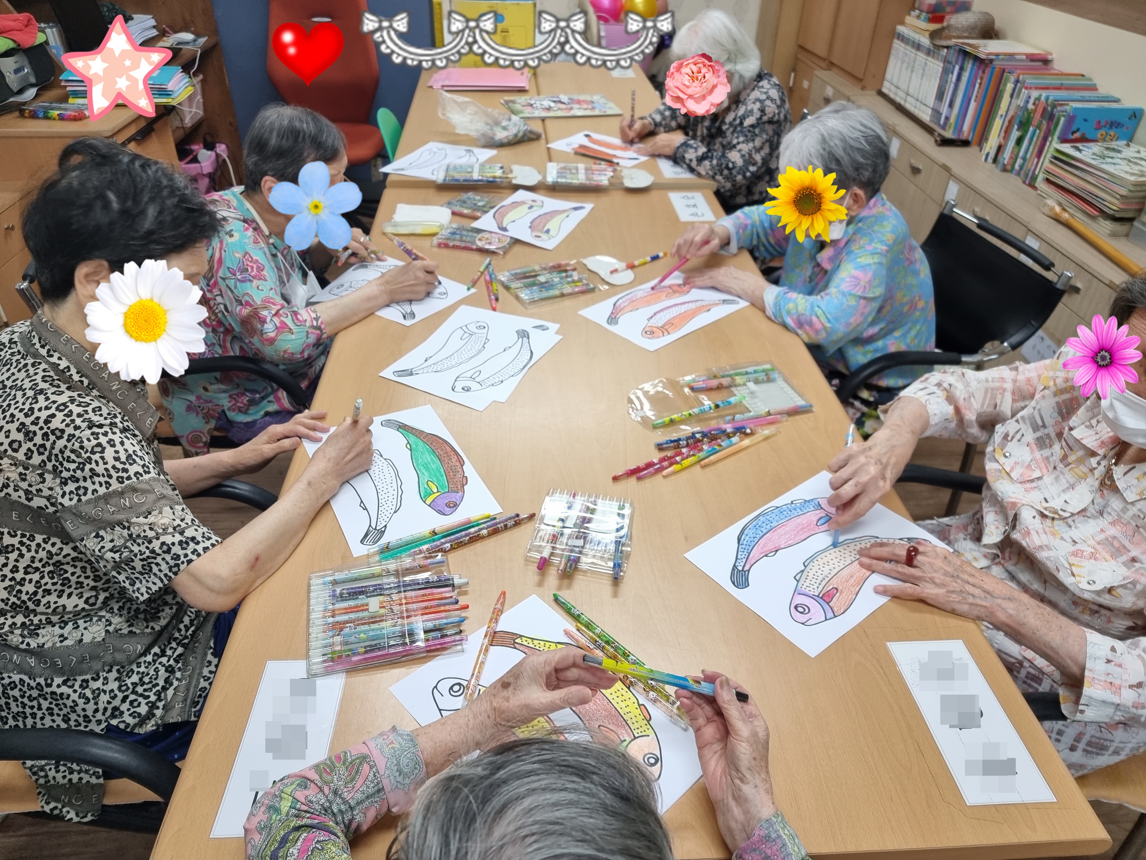 굴비그림에 색칠하고 계신 어르신들 모습입니다~ 색칠을 다 한 후엔 신문지로 새끼를 꼬아서 굴비를 엮을 꺼예요!!