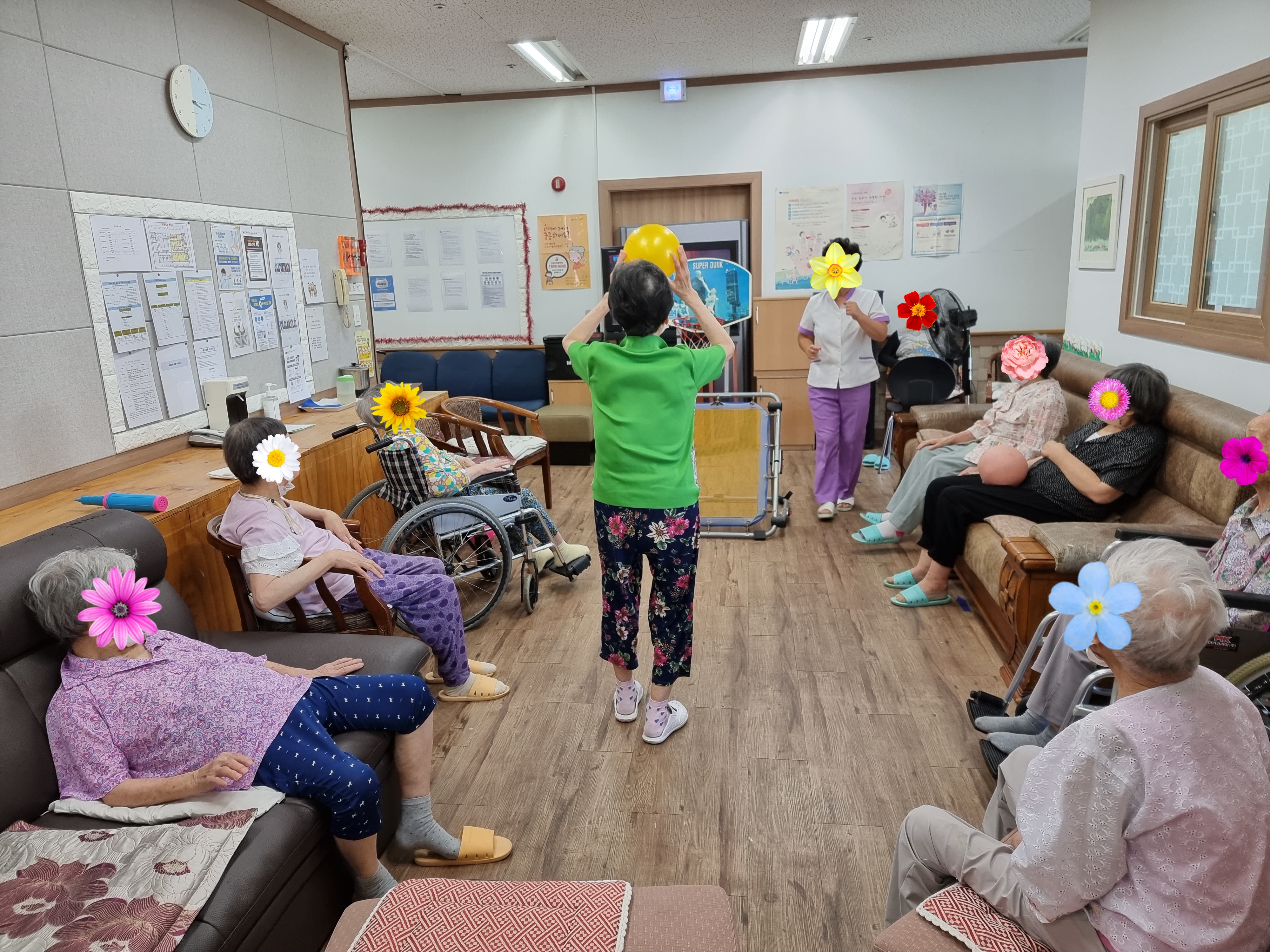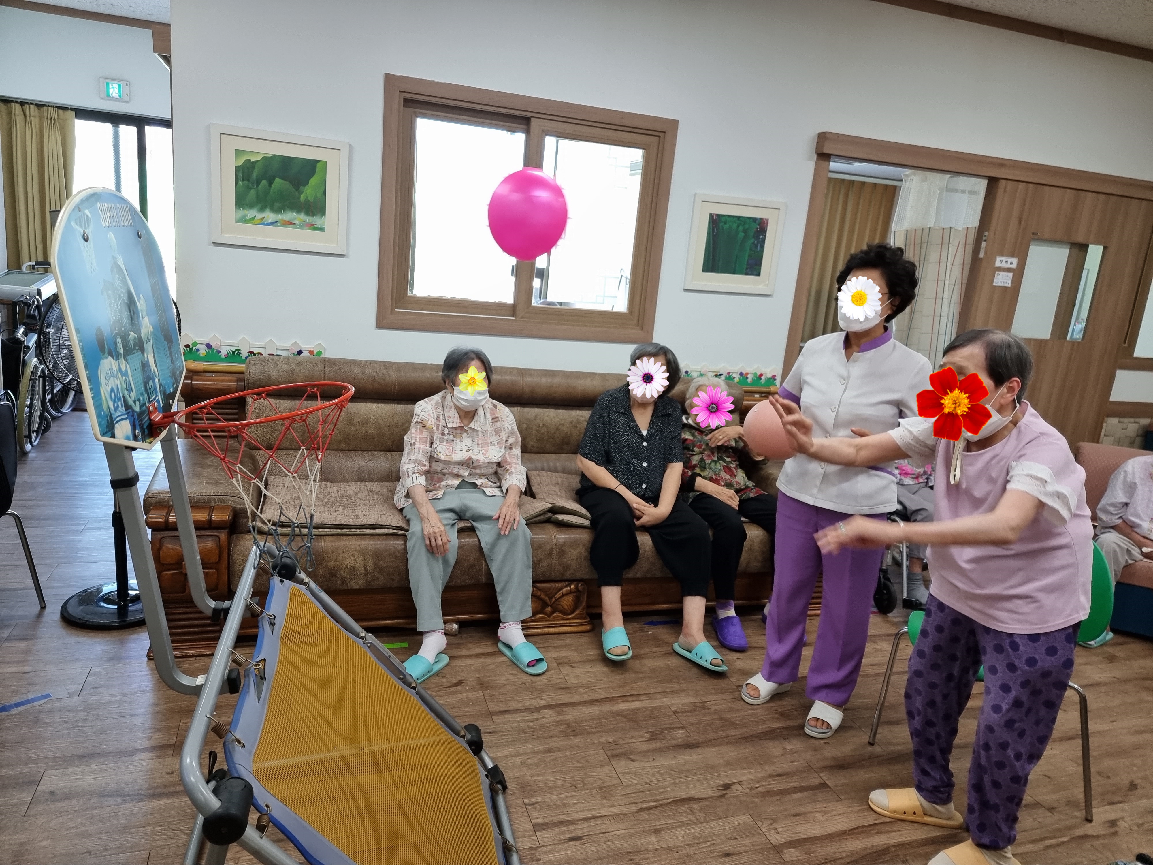 어르신들께서 즐겁게 미니농구를 하시는 모습입니다^^