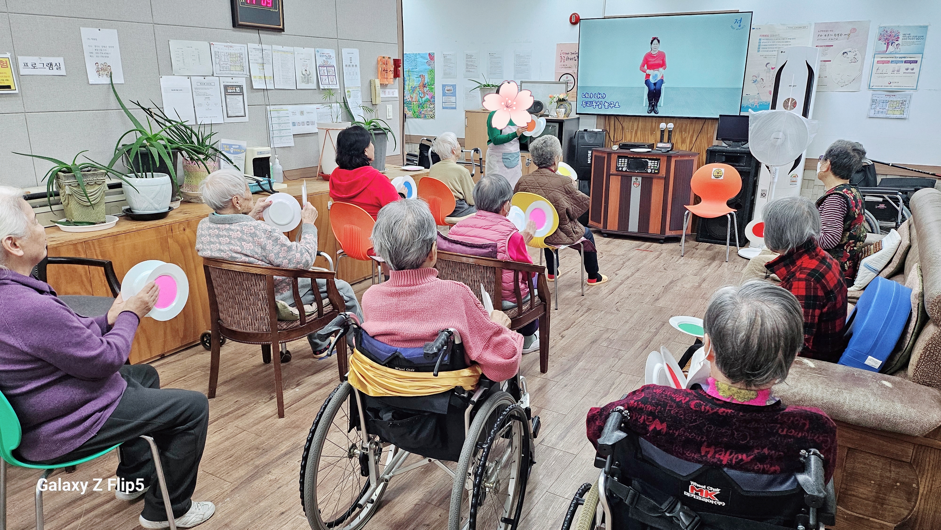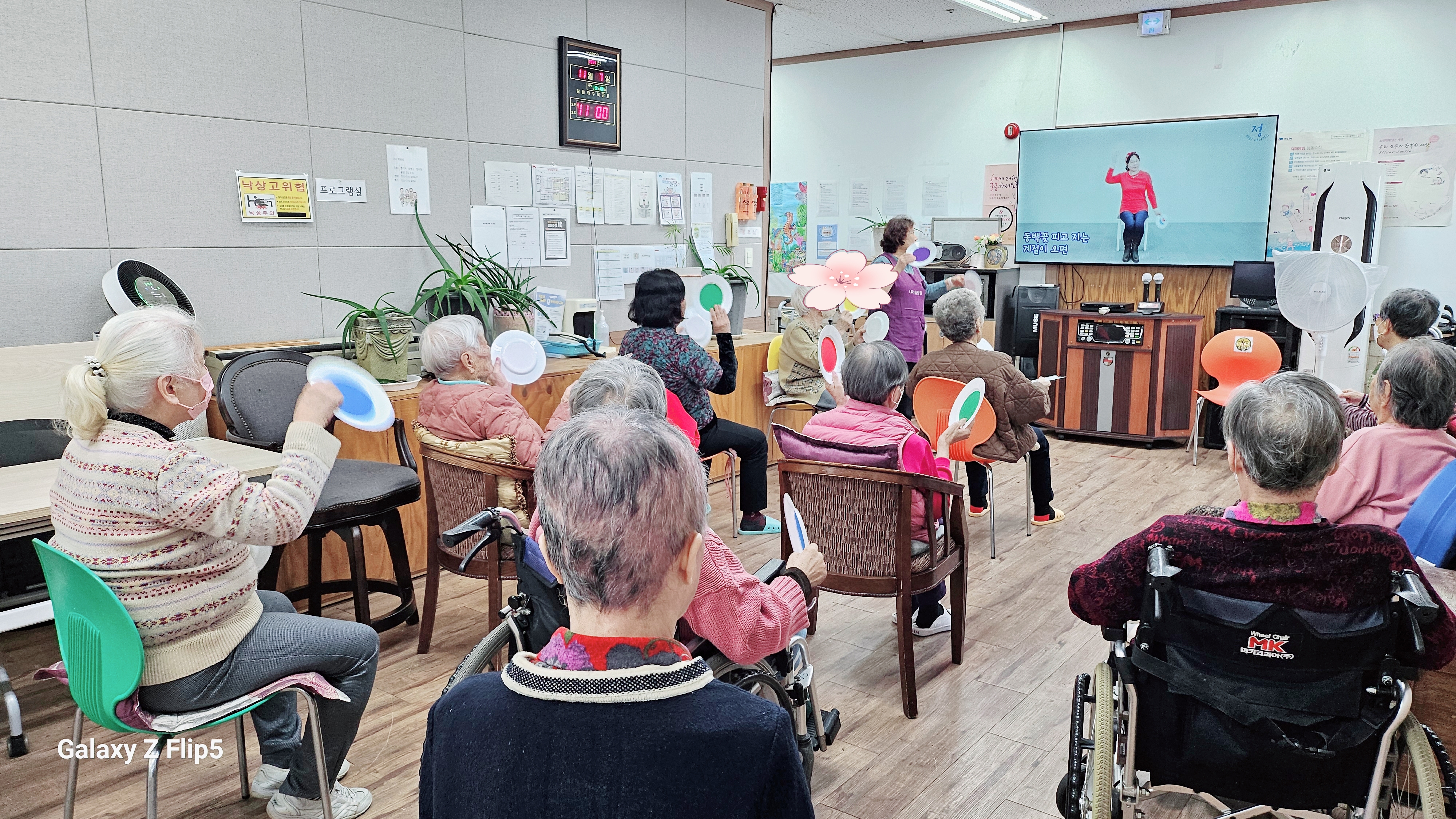 니나노~ 옛노래 가락에 맞추어 접시체조를 하시는 어르신 얼굴에 미소가 가득 ~^^