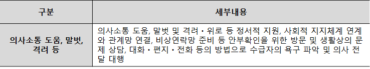 말벗, 격려벗, 위로, 의사소통, 생활상담 등 심리적인 지원